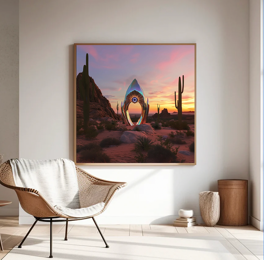 El marco no está incluido. Para saber más sobre las diferencias entre el papel Fine Art, el plexiglás y el Dibond, visita la página de Materiales de nuestro sitio web.