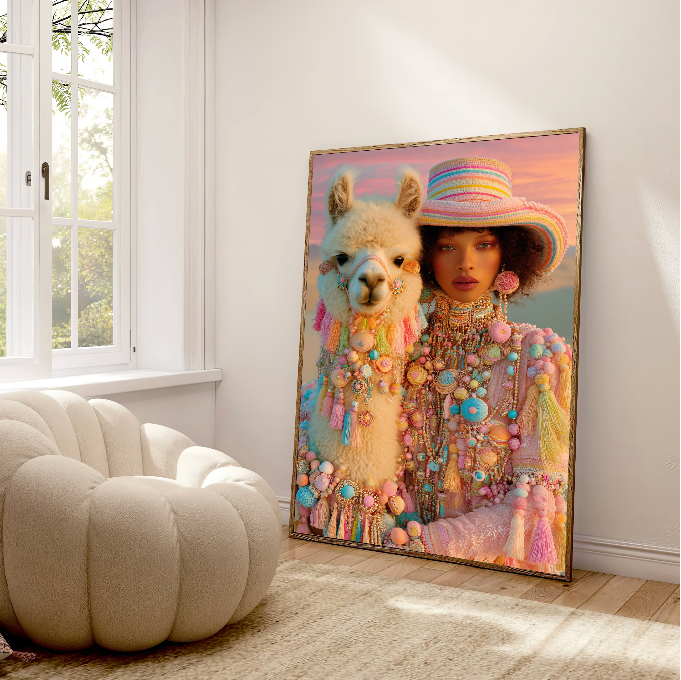 Une fusion magique de mode bohème et de surréalisme, baignée par la lumière dorée du désert. Chaque détail, chaque accessoire raconte une histoire de liberté et de rêves.