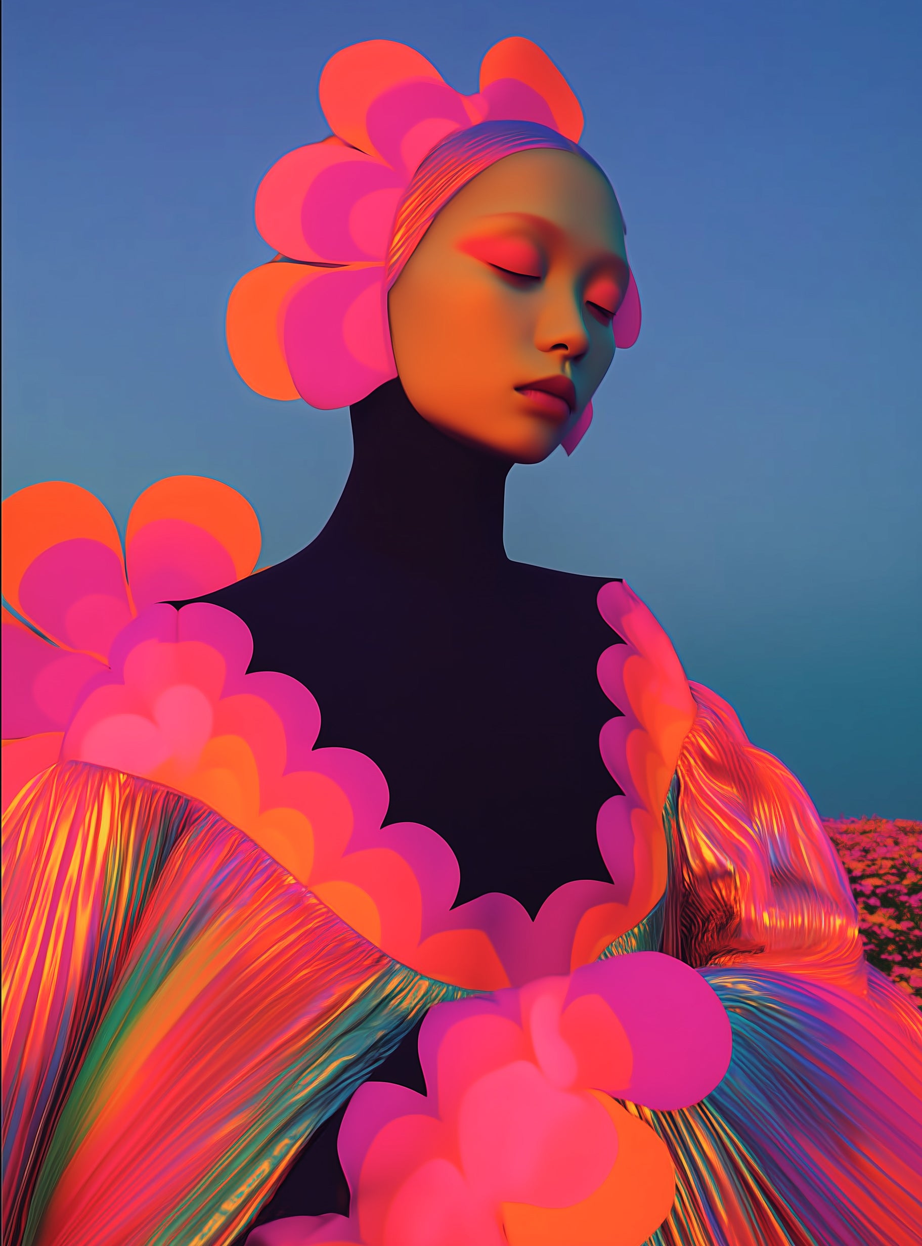 Between the shimmer of plastic and the whisper of the wind, beauty turns into play, and reality becomes a gentle mirage.