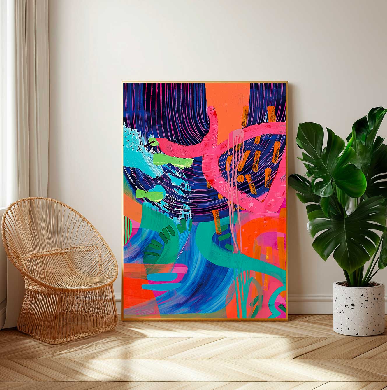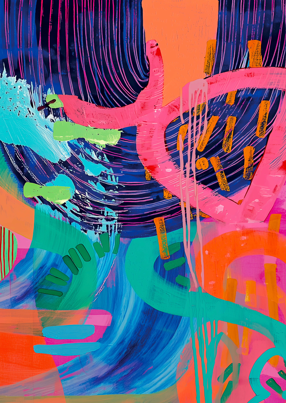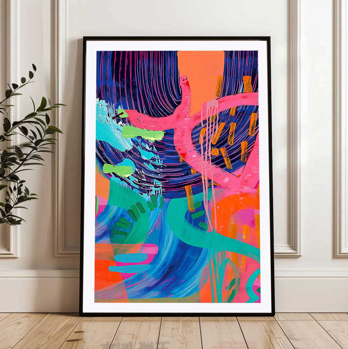 This abstract print series represents paintings through expressive brushstrokes, spray marks, and flowing drips. Each work captures movement, texture, and spontaneous gesture.