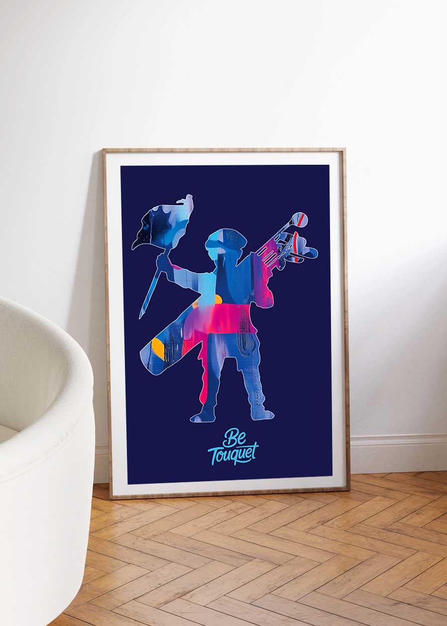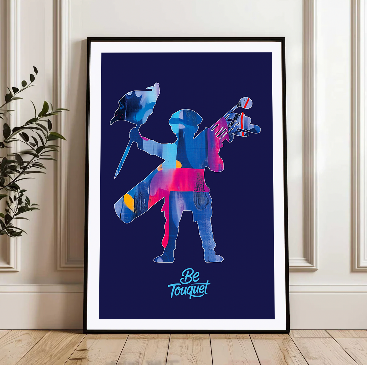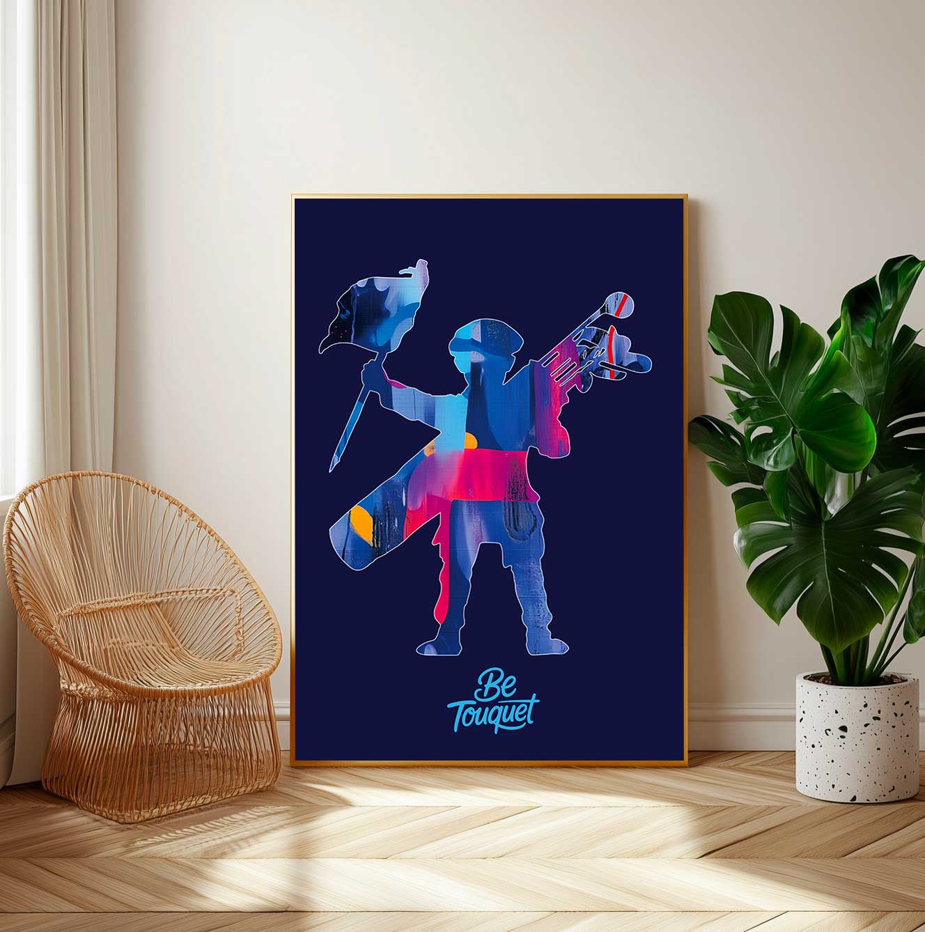 Each painting is paired with a character, the Touquet caddy. Inside the caddy, the same colors and brushstrokes from the original painting reappear, turning the character into an extension of the artwork itself.