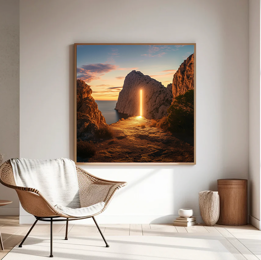 Las Puertas del Cielo & El Reloj Solar. Portals of the Unknown. At Ibiza’s cliffs, Las Puertas del Cielo stands as a threshold between worlds, where time dissolves and the sky opens into eternity. As the sun sinks, whispers of ancient energies flow, guiding lost souls beyond.